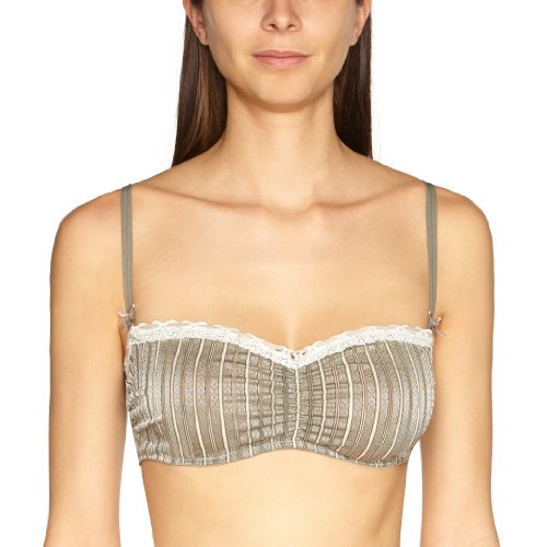Billet Doux Les Bermudes - Soutien-gorge Bandeau - Bretelles Amovibles - Rayé - Maille Extensible - Femme - Gris (Kaki/Ivoire) - 85C (Taille Fabricant : 70/85C)