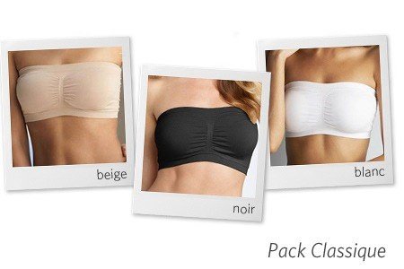 Bandeau Bra sans bretelles effet push-up. En bref - OFFRE 1 : S, M, L, XL et XXL - Lot classique composé d'un bandeau Noir, Blanc et Beige